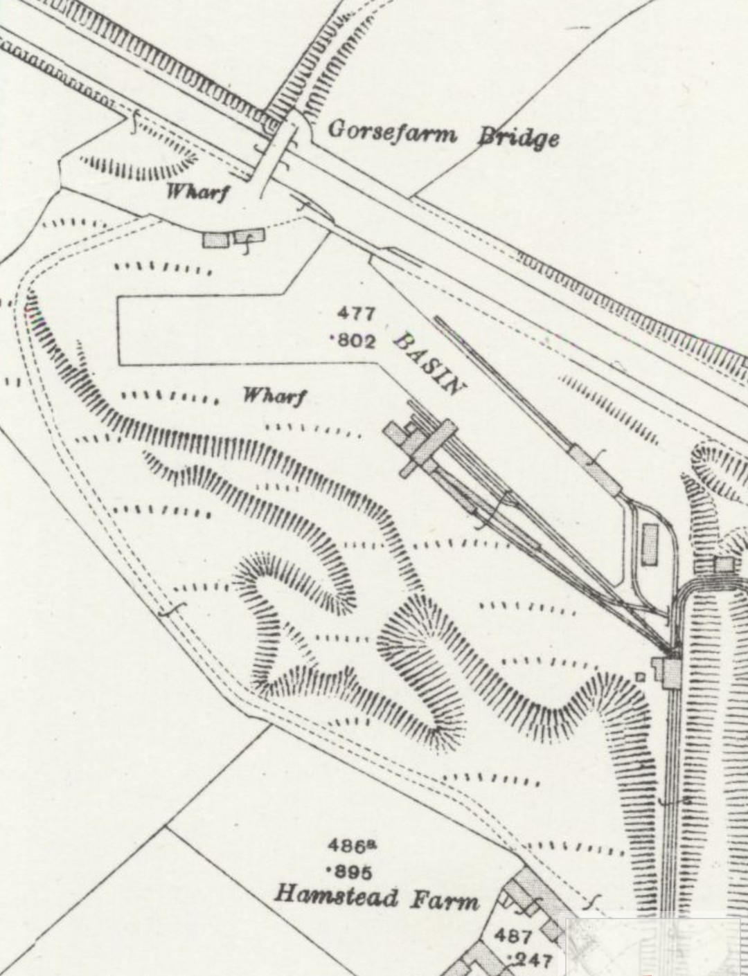 Canal Basin showing the tip and buidings at end of the tramways